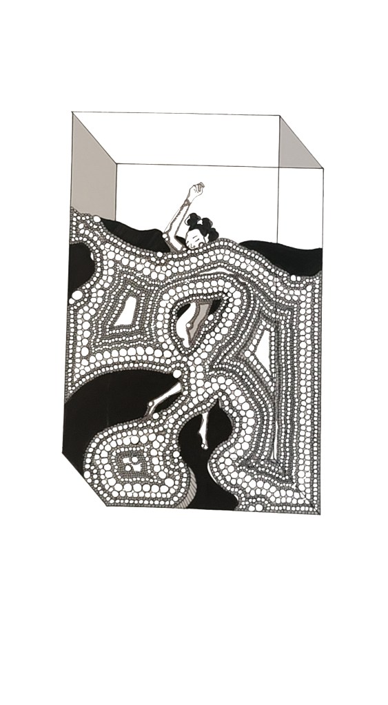 About | As a Black woman living in the United States, experiencing how the various systems and infrastructures of oppression, everything from education to employment, to interactions with individuals and personal relationships have contributed to the personal emotional blockage of Black women. We often keep a lot of our experiences and feelings of pain, anger, sadness, and frustrations within, where it continues to build up. Since Black women, are often described as strong and always holding it together, I wanted to explore what would happen if we unleash the emotional floodgates and release all that we are holding: happiness, fear, sadness, pain, frustration, regret, remorse, guilt, pint up aggression, softness, and joy? What would the effect be on ourselves and our environment? The circles are used to create texture and represent the different emotions, feelings, and experiences that make up the Black woman.