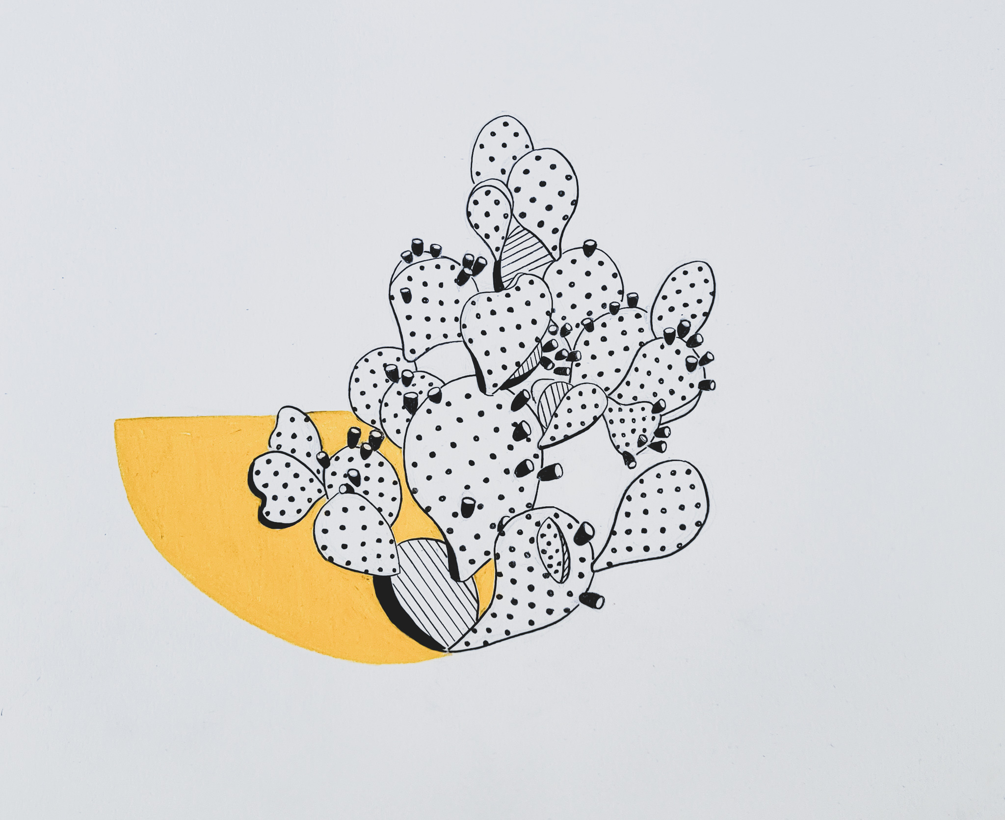 About a month ago, I had the urge to draw cacti. I guess that comes with the territory when living in the desert. With that being said, I’m now exploring botanical illustrations, somewhere along the lines of realistic with tinge of fun.