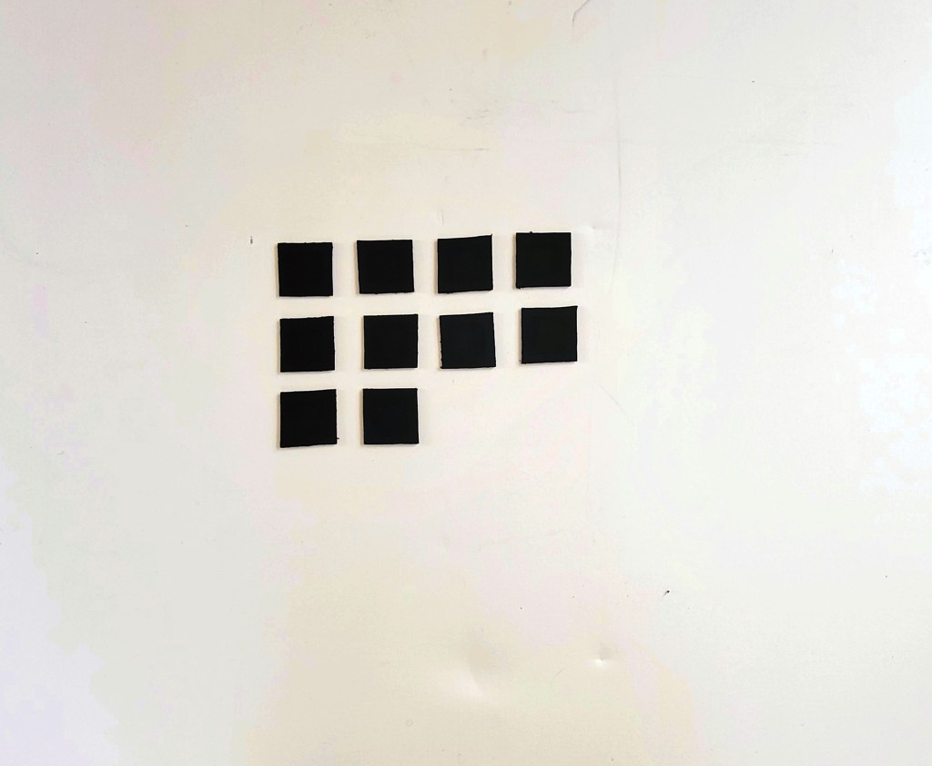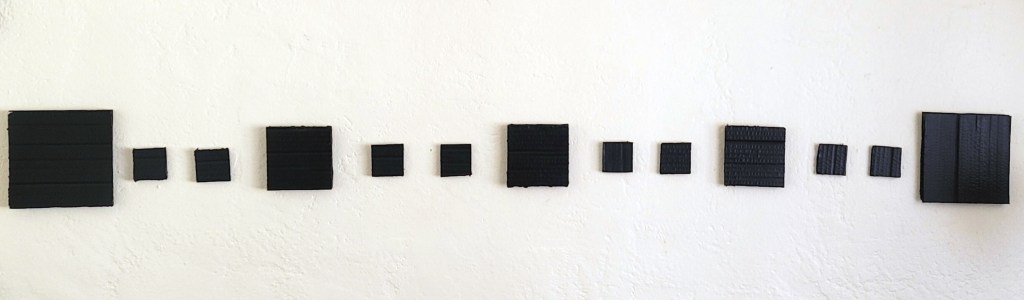 Oscillation – Black Mini | 2024 | Size varies on desired spacing and individual pieces are 2in x 2in | Cardboard & Acrylic Paint