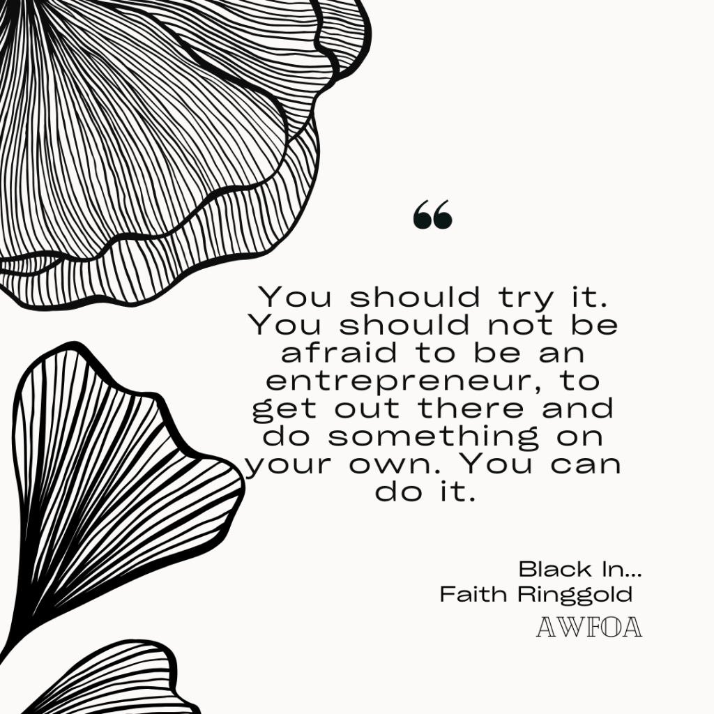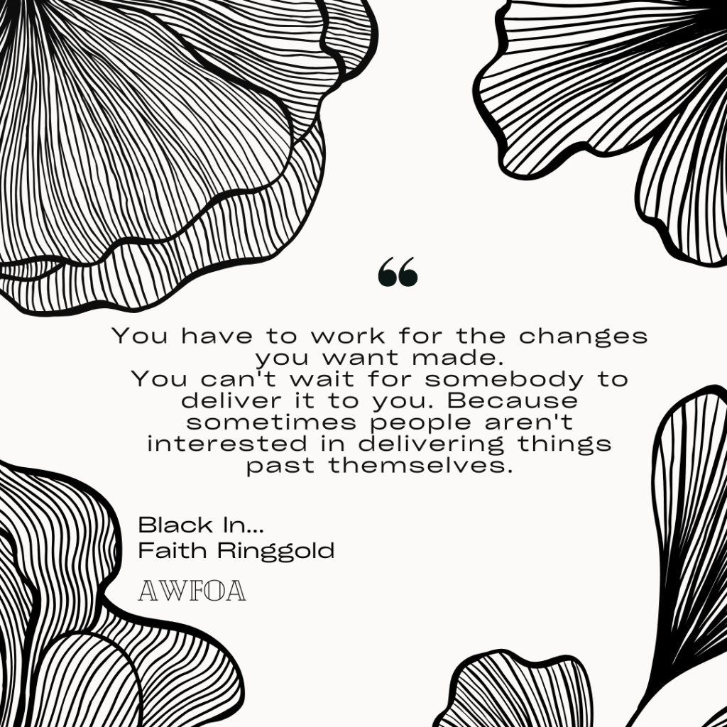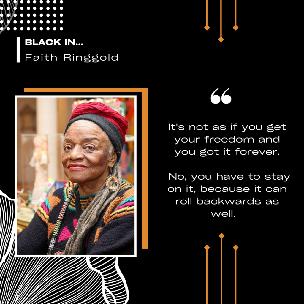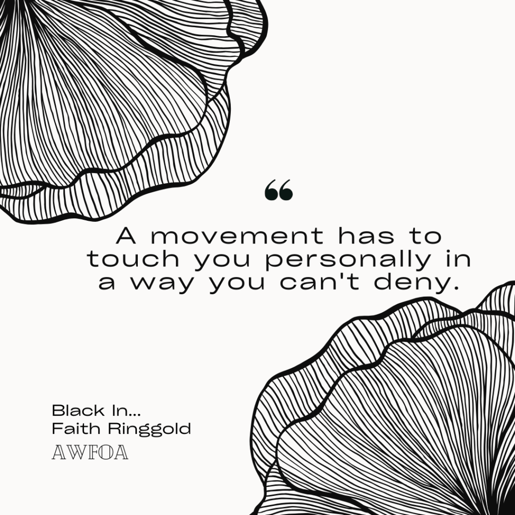 This month we’re focusing on the words from one of our recent ancestors, Faith Ringgold. She was a prolific painter, mixed-media sculpture, author, educator, intersectional activist and so much more.