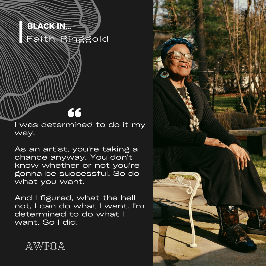 October 8, 1930 – April 13, 2024 This month we’re focusing on the words from one of our recent ancestors, Faith Ringgold. She was a prolific painter, mixed-media sculpture, author, educator, intersectional activist and so much more. For more insightful words and conversations by Faith Ringgold: For more words from our ancestors: Stay connected withContinue reading “A Word From Our Ancestors | Faith Ringgold”
